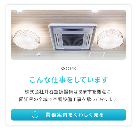 株式会社井谷空調設備のホームページにお越しいただき、誠にありがとうございます。私たちは愛知県あま市に事務所を構え、県内各地で活動している空調設備業者です。